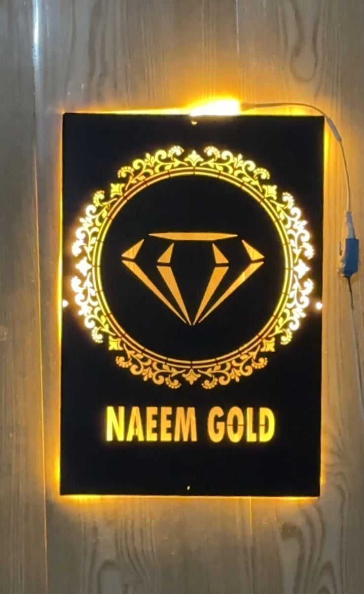 Proudly displaying the name NAEEM GOLD, this frame adds a premium touch to your store interior or entrance, instantly grabbing attention and reinforcing brand presence. Ideal for jewelers, boutiques, and upscale businesses, it reflects the value and class your brand stands for.